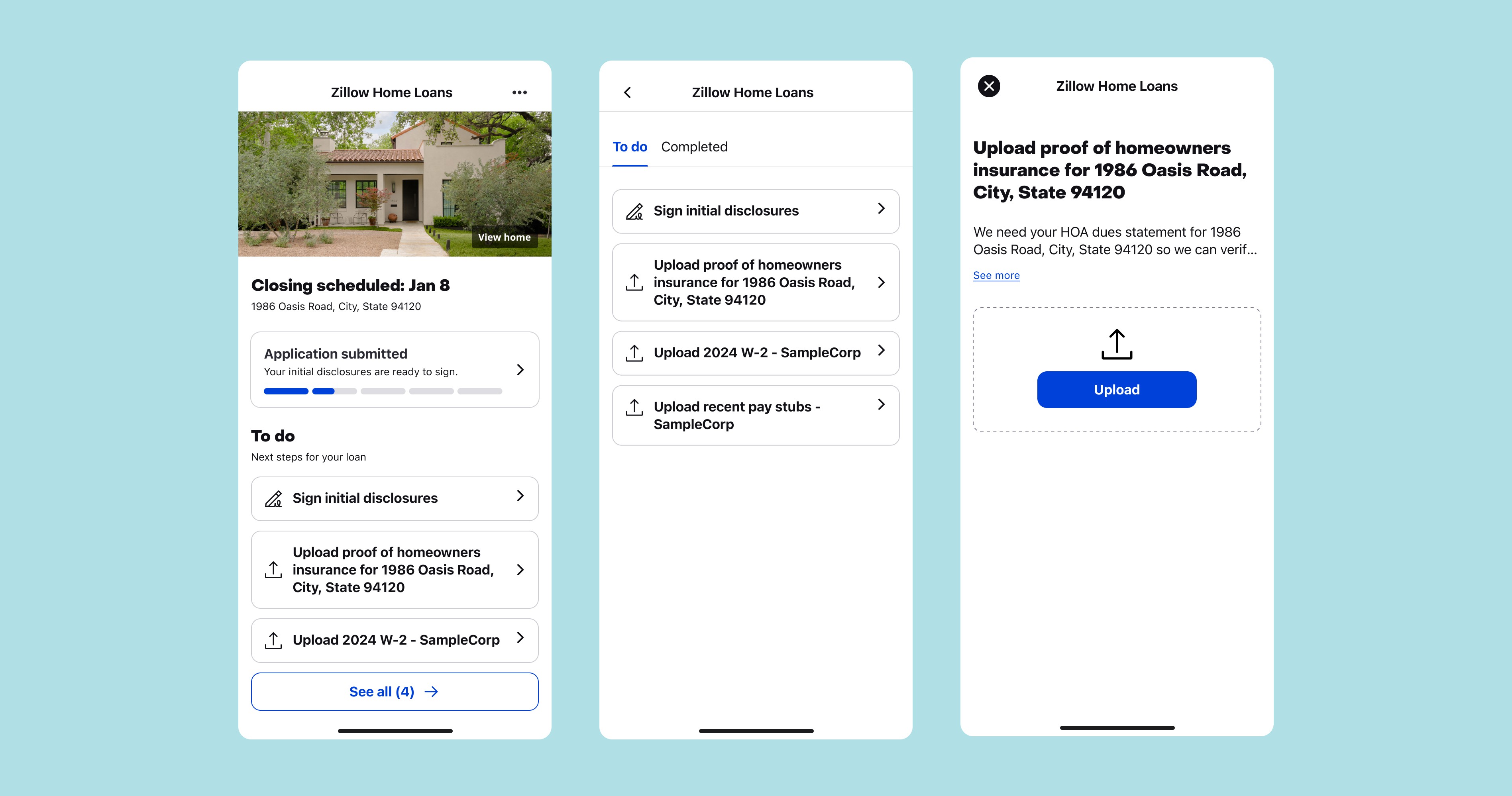 Zillow's mortgage closing experience was powered by a third-party tool disconnected from the broader Zillow ecosystem. Owning the design end to end, I led the 0→1 design of a first-party replacement, unifying loan tracking, task management, document uploads, and closing milestones into a single native experience. Designed under a tight timeline with significant cross-functional complexity, with projected impact on loan officer efficiency, customer support reduction, and task completion. Full case study available under NDA, reach out.